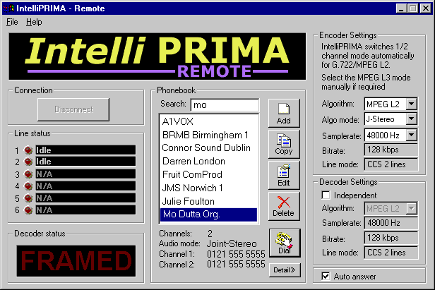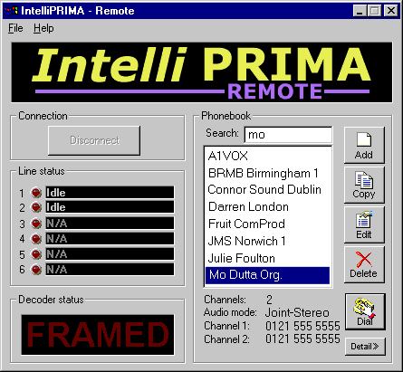 | Intelligent Windows PC Remote control software for the CDQ Prima range of ISDN audio codecs | ![]() |