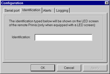 The identification string that you enter here is displayed on the LED section (VU meters) of a remote CDQ Prima device that you connect to... this is only available on CDQ Prima x20 models, not x10 which do not have VU meters.