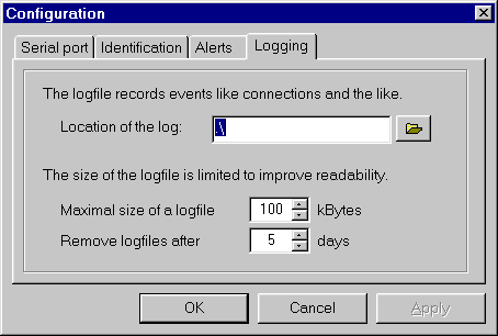 IntelliPRIMA maintains a logfile of incoming and outgoing connections. This logfile is stored in the program directory. The default options are normally fine.